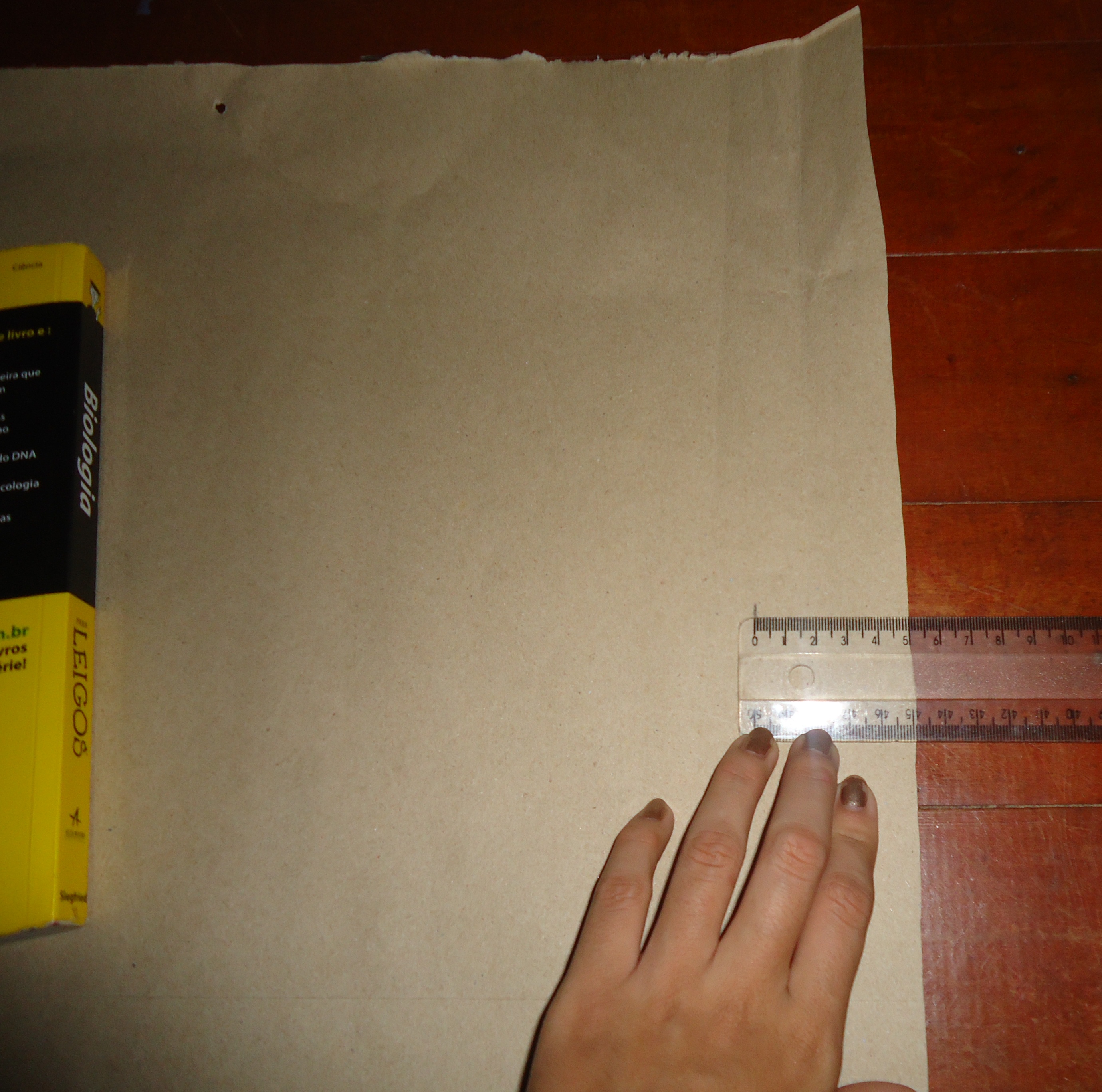 Primeiro pegue uma sacola de papel que seja grande o suficiente pra caber o livro e deixe sobras, use alguns livros de tamanhos diferentes para usar como molde.???????????????????????????????